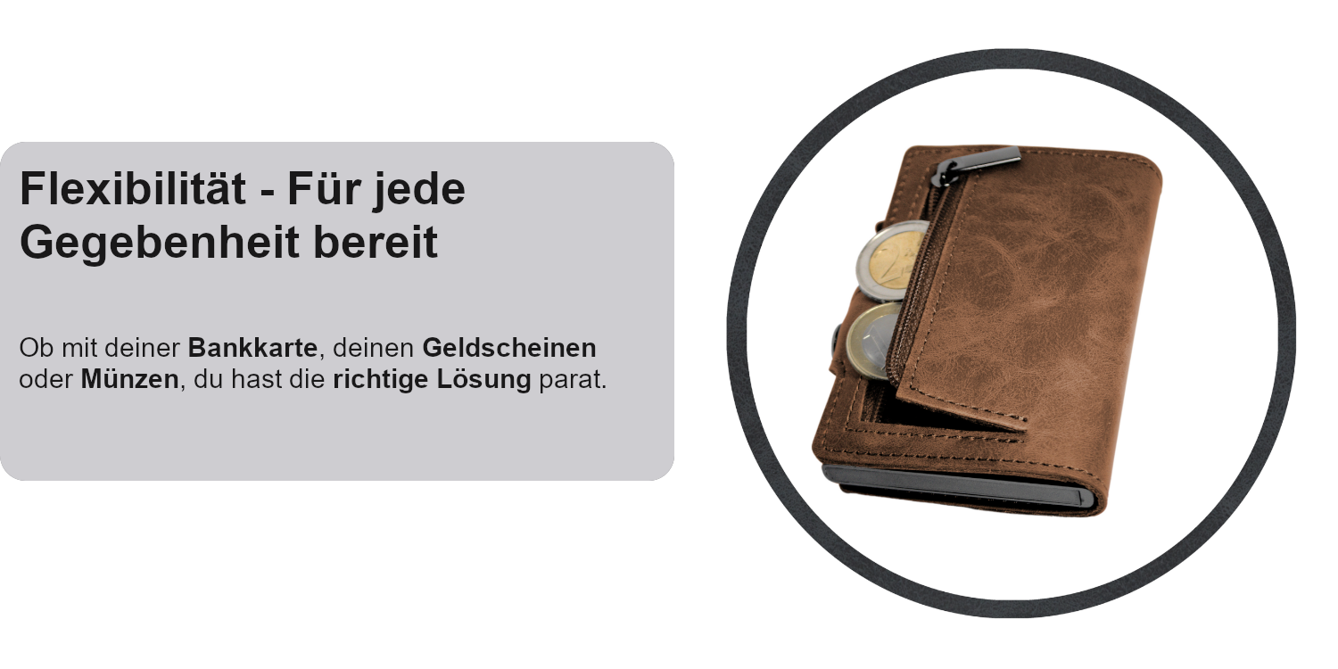 Das Wallet schützt dich vor einem unerwünschten Auslesen der Karten durch RFID-Scanner (Radio Frequency Identification). Somit sind alle Daten deiner Kreditkarten, Bankkarten, Chipkarten, Personalausweise und sonstigen Karten gegen Datendiebstahl geschützt.